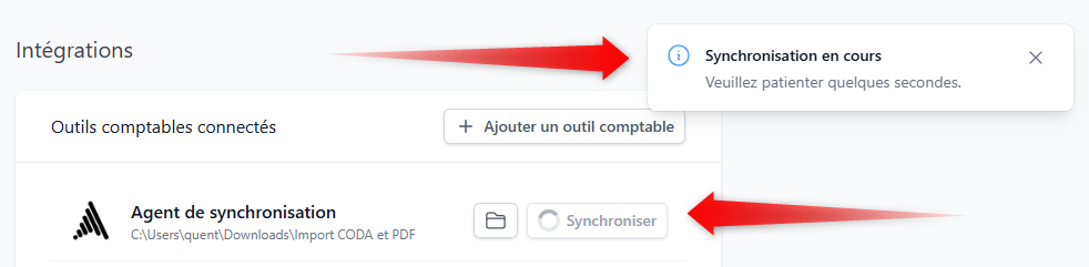Dès que la synchronisation démarre, le bouton de synchronisation devient grisé et une notification vous informe que le processus est en cours. Une fois la synchronisation finalisée, une autre notification vous prévient. Plus besoin de vérifier manuellement si les CODA ont bien été synchronisés.