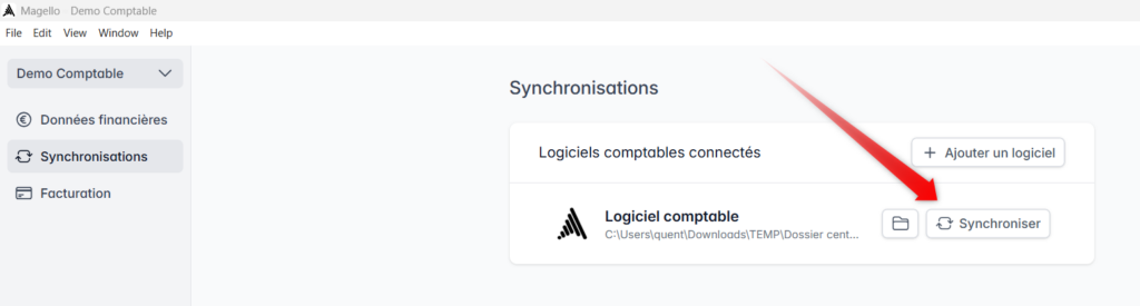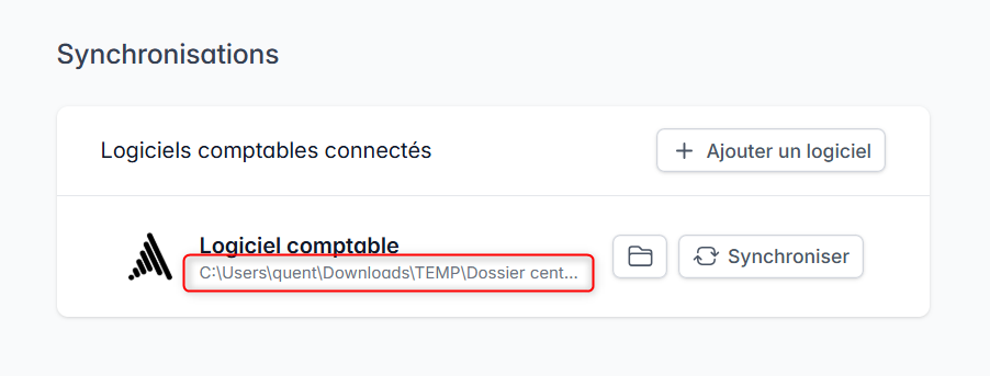 • Le chemin d’accès du dossier apparaît sous le nom du logiciel comptable.