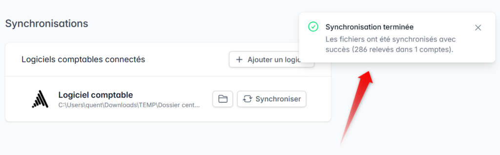 Le logiciel de synchronisation est correctement configuré. Votre logiciel comptable peut désormais accéder aux CODA depuis ce répertoire.