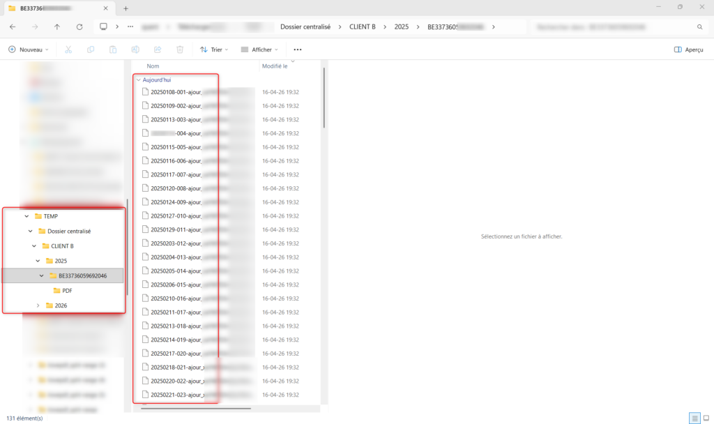 • Des sous-dossiers par client, année et par IBAN ont bien été créés.