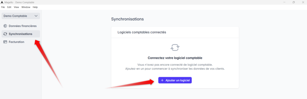 • Cliquez sur Ajouter un logiciel et choisissez votre logiciel comptable.