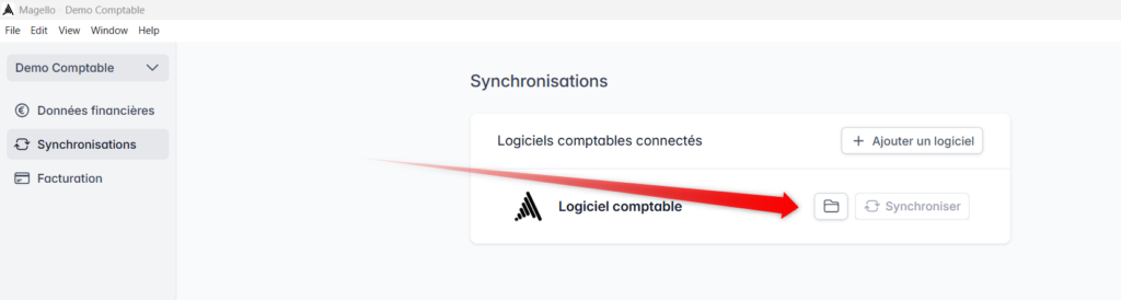 • En regard du nom de votre logiciel comptable, cliquez sur le bouton avec l’icône de dossier.