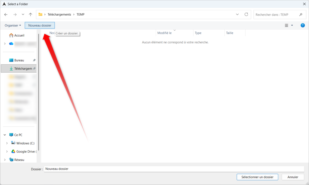 • Créez un dossier sur votre ordinateur ou serveur dans lequel seront stockés les fichiers CODA synchronisés depuis Magello. Par exemple : C:\Magello ou D:\Magello. Et cliquez sur le bouton Sélectionner un dossier.